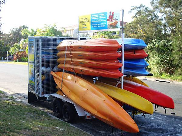 澳洲東岸的賞鯨季節是每年的 6~10 月,去年不清楚,11月初想去 Hervey bay 參團的時候撲了個空,鯨魚才剛往北游走,所以打算今年一定要完成這個殘念。這次本來只是想找開船出海的賞鯨團,悠閒的吹海風看鯨魚拍照,沒想到當天沒有任何團可以參加,看到我們失望的臉,資訊小姐突然說,你們要不要嘗試 Kayak (雙人獨木舟)?來回約三小時,一人澳幣 $45。因為實在太想看鯨魚了,所以我也沒多加思考就訂了五張票。到了集合地點,大家開始著裝準備出發,看看周遭的西方人,突然覺得很尷尬,因為怕曬三小時會曬傷變小黑人,我還特地穿了長襯衫,但其他人都是穿比基尼跟海灘褲...(後來事實證明應該要穿泳裝才對,因為我剛下海一分鐘全身就濕了,衣服黏在身上超難過)